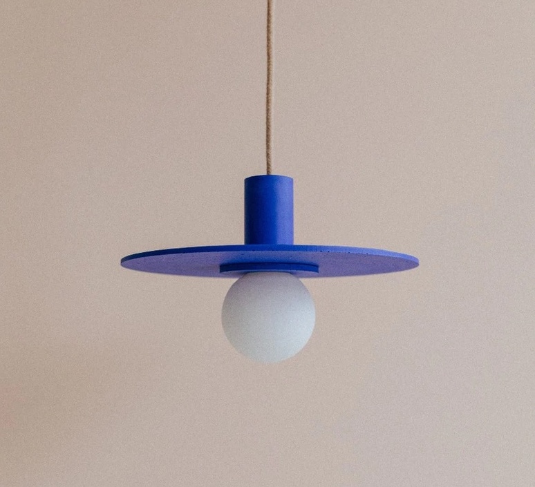 Minimaliste et parfaitement proportionnée, cette suspension bleue joue sur la géométrie et la légèreté. Suspendue au-dessus d’une table ou dans une entrée, elle apporte une touche contemporaine sans dominer l’espace. Le bleu, franc mais mat, dialogue subtilement avec la lumière et les volumes.