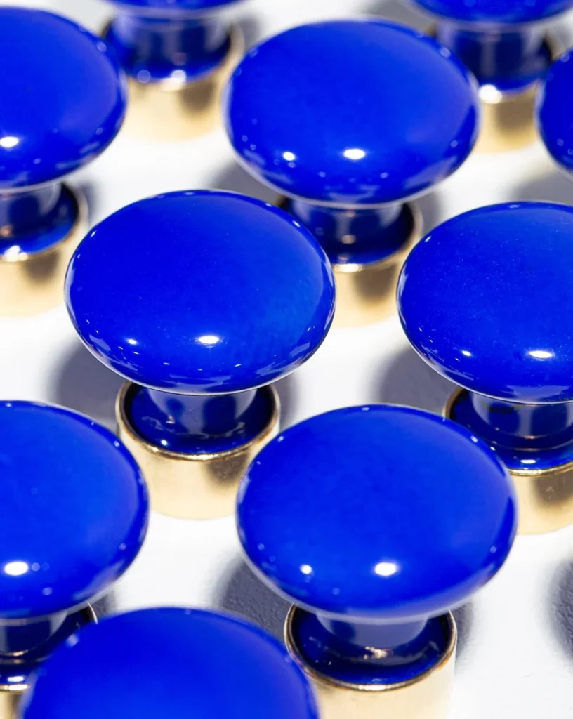De petits objets, mais un impact visuel immédiat. Ces boutons en porcelaine bleu électrique viennent réveiller une façade neutre, un buffet ancien ou une cuisine contemporaine. Le bleu est lumineux, presque joaillier, et la porcelaine apporte une finition douce et légèrement brillante.