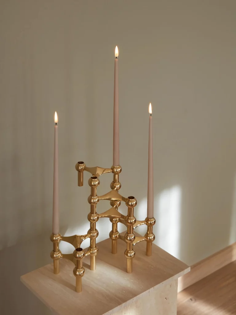 Quelques années plus tard, Hans Nagel reprend l’entreprise familiale. Dans la scène créative de Cologne, il rencontre l’architecte et artiste Werner Stoff, connu pour ses objets aux lignes arrondies, presque volontairement “sans angles”. De cette rencontre naît, au début des années 1960, le système de bougeoirs Nagel : un objet modulaire, sculptural, reproductible, qui cherche moins l’ornement que la cohérence, moins l’effet décoratif que la justesse d’une structure.