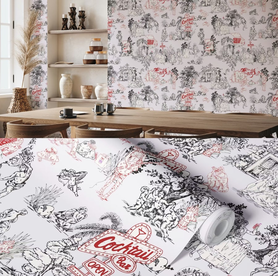 Il y a des motifs qui traversent les siècles sans jamais perdre leur pouvoir d’évocation. La toile de Jouy fait partie de ces rares décors capables de raconter une histoire au premier regard. Pastorales délicates, scènes bucoliques, silhouettes gravées comme des souvenirs anciens : ce papier peint emblématique convoque à la fois le patrimoine décoratif français et une certaine idée du raffinement domestique.