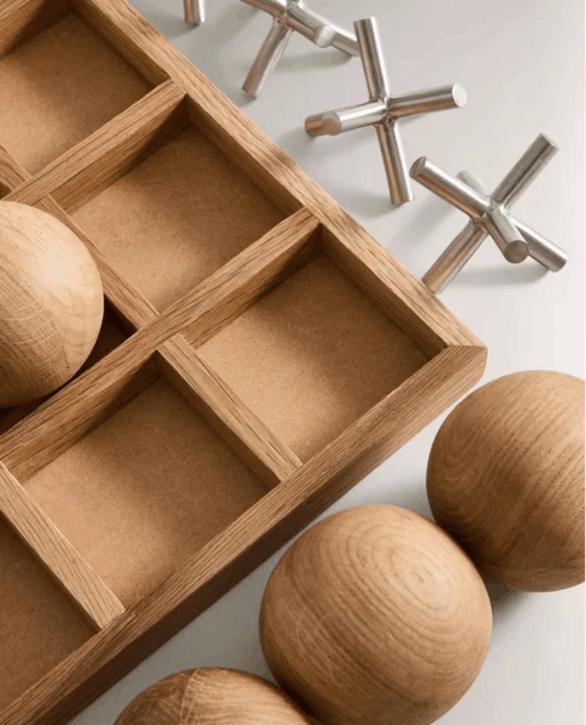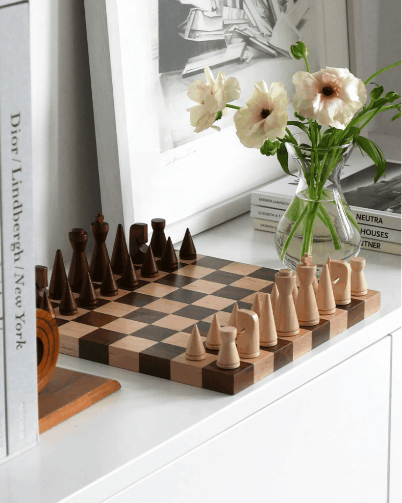L’enjeu n’est pas d’accumuler, mais de choisir une ou deux pièces qui trouvent naturellement leur place. Sur une table basse, une console ou une étagère, un jeu peut dialoguer avec un livre, une céramique ou une lampe, sans jamais chercher à dominer l’ensemble.